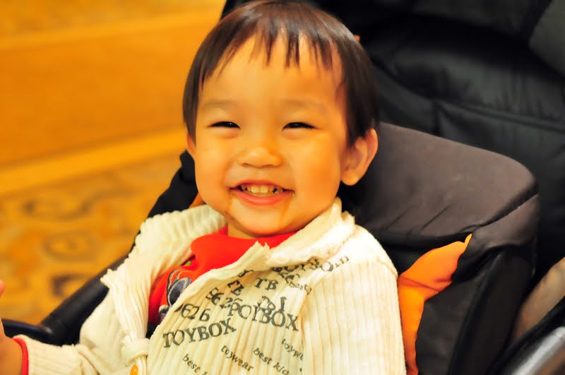 小寶忙著玩他的卡車,似乎也沒太注意他剛唱完一首歌,只有媽咪自己高興著,怎麼這麼榮幸阿,有個可愛的小天使當了合音呢!